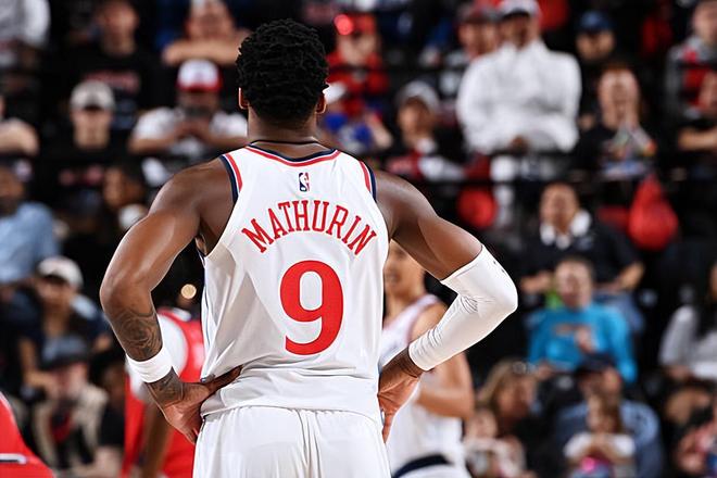 快船的替补后场新援本尼迪克特-马瑟林(Bennedict Mathurin)的表现还是非常出色的。马瑟林全场出场36分26秒,投篮20中9,三分线外5中2,罚球9中8,得到了28分7篮板1助攻1抢断的数据,还有2次失误和1次犯规,正负值为+5。马瑟林在本场比赛中又一次将自己的特点充分发挥了出来,他不断通过冲击对手内线完成得分,而且也是起到了很好的效果的。值得一提的是,马瑟林在本场比赛中还命中了两记三分,也是马瑟林在加盟快船后首次在比赛中达到四成以上的三分命中率,这也多多少少算是比起之前一系列比赛有了进步了。马瑟林在防守端的态度还是非常积极的,也算是在防守端起到作用了。总体来看,马瑟林也算是在本场比赛中发挥出了自己的特点并且为球队的胜利做出了自己的贡献。